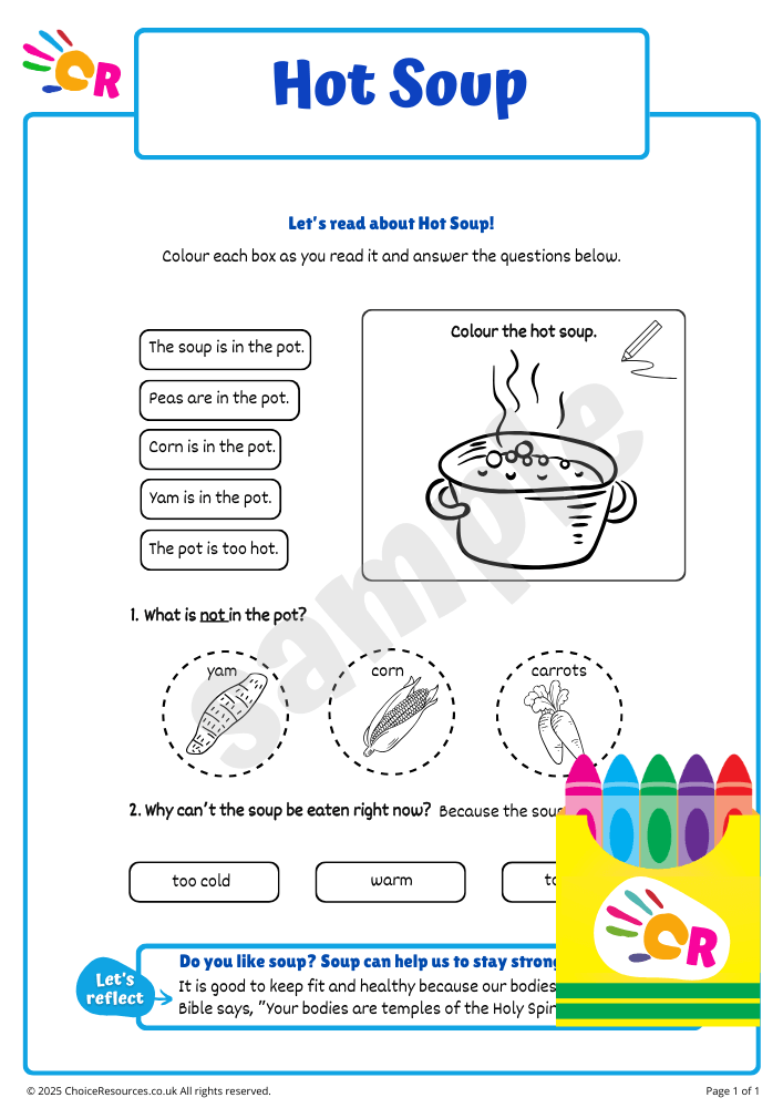 Hot Soup is an interactive and engaging activity sheet that shares God’s Word.