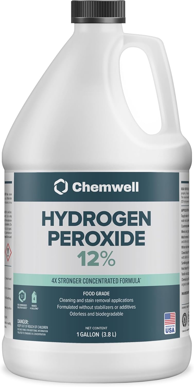 Description: This 12% hydrogen peroxide solution is designed for powerful cleaning and household use. Ideal for surfaces in the kitchen, bathroom, and laundry, it provides a reliable option for effective and thorough cleaning. Made in the USA with a focus on quality and performance, this eco-friendly solution is versatile for both residential and industrial applications. Features:12% hydrogen peroxide solution1-gallon size for extended useEco-friendly and reliable for powerful cleaningIdeal for household and industrial environmentsMade in the USA