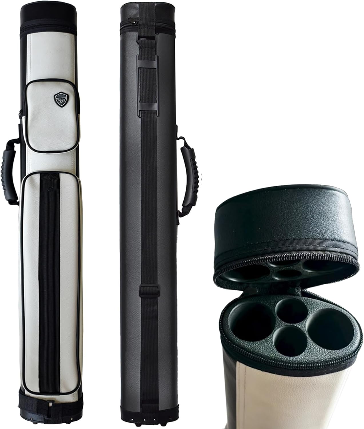 2 x 2 hard cue case oval pool cue billiard stick carrying case, the outer leather is waterproof and easy to clean, and can accommodate 2 butts and 2 shafts, suitable for two 58 inch 2-piece cues. Function:Which effectively protects the club from warping, moisture and scratches. Appearance size: 33.85 inches long x 4.13 inches 2.36 inches. 【Small pocket】: 5.9 inchesx 3.15 inches. 【Large pocket】: 16.14 inchesx 3.15 inches.Surface leather: Waterproof and easy to clean.