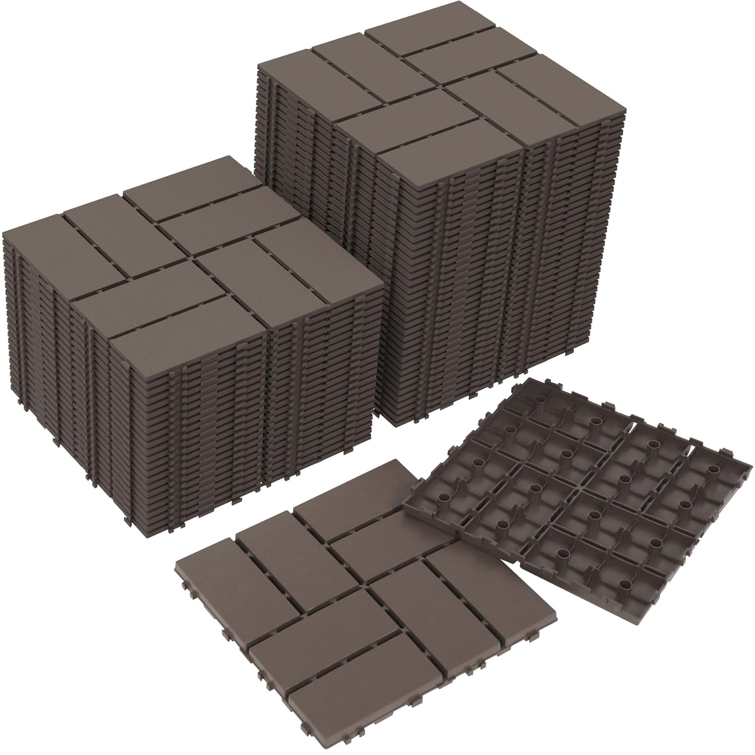 • Anti-Slip and Safe: The surface of the patio tiles has a wood-grain imitation texture, and the bottom has a grid structure, which can effectively enhance friction; This ensures the deck flooring is not easy to move, and you won’t slip or fall when walking on it