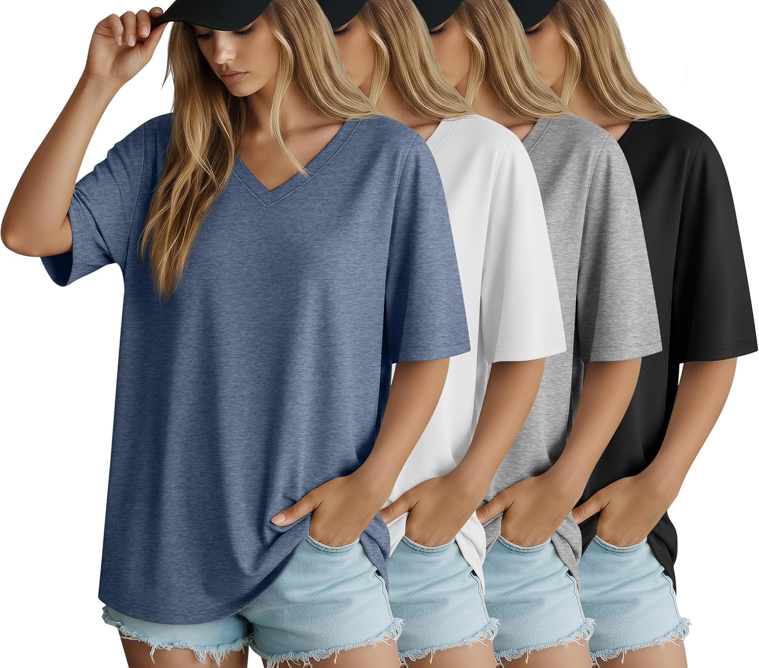 Features: These oversized workout shirts for women can be effortlessly matched with various garments, such as yoga pants leggings, shorts, skirts, or jeans, boosting your elegance. Easy to manage daily wear and create a casual or sporty style. Our plain t shirts for women are available in different sizes: Small, Medium, Large, X-Large, XX-Large. Please refer to the size chart before purchasing and choose the size that suits you. Material: 90% Cotton, 10% Spandex Package includes: 4 X Women Oversized Short Sleeve Shirts Notes: Manual measurement, please allow slight errors on size. The color may exist a slight difference due to different screen displays