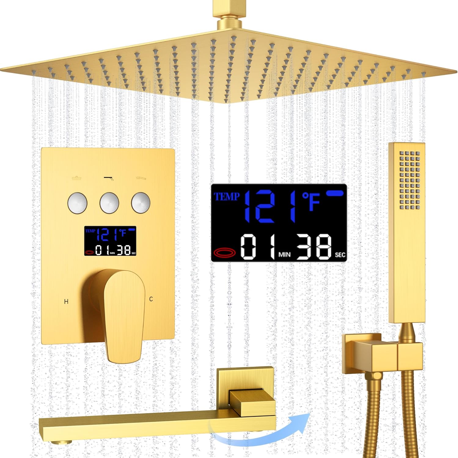 | Included Components | Shower Fixture Set with High Pressure 12 inch Square Shower Head and Digital Display Temperature Control Pressure Balancing Mixer Shower Diverter Valve Kit |