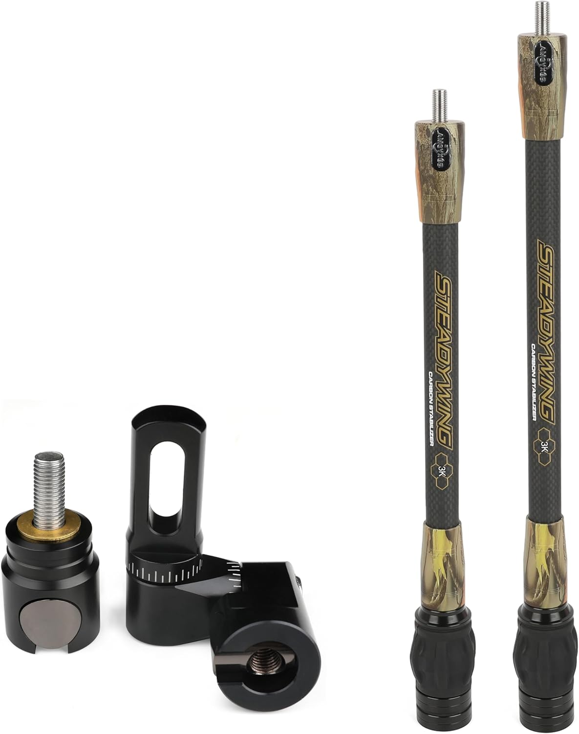 Name:Compound Bow Stabilizer Rod Color: Black / Camouflage A / Camouflage B Size. 3.9*23.9cm(6 inch) 3.9*31.9cm(8 inch) 3.9*34.1cm(10 inch) 3.9*39.2cm(12 inch) 3.9*47.2cm(15inch) Weight. 314.2g(6 inch) 319.2g(8 inch) 322.5g(10 inch) 330g(12 inch) 346.7g(15inch) 41.4g(Spacer) 56.2g(rubber ball) 111.5g (4 alloy counterweights) Material: Carbon Fibre Shaft + Metal Weights Item name: single side v bar Color: Black Material:aviation aluminum Weight: 197g Package size: 17.8x11.5x3cm