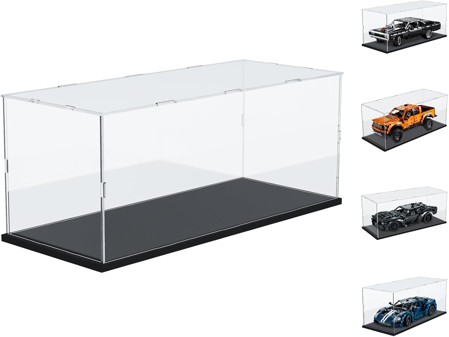Advantages Transparent display design: The surrounding panels are made of high-quality 3mm thick clear acrylic sheets, which are crystal clear. Up to 98% transmittance which can show your favorite collectibles more clearer. Stackable design: The base is made of high-quality 10mm thick matte wood-plastic board, which is sturdy and stable. You can stack the display case in multiple layers according to your needs. Dustproof function: This acrylic display case can protect your model item from dust and reduce UV ray damage. Color and Size Black: 15.7x11.8x23.6 inch / 40x30x60 cm (WxDxH) White: 15.7x11.8x23.6 inch / 40x30x60 cm (WxDxH) Package Including 1 x acrylic display case 1 x decor strip(1.5 meters long) 1 x instruction 1 x cleaning cloth 1 x pair of gloves Installation Instructions Tip 1: Before installation, please wear gloves, tear off the white protective film on both sides of the acrylic sheet, and keep all parts clean. Tip 2: It takes two people to assemble the large display case. The display item and light strip need to be placed on the base before installation. Step 1: First, insert the 2 side panels(with hooks) into the base. (Note 1: The long tabs of the side panels should be installed to the base facing down.) (Note 2: The hooks of the side panels should point up.) Step 2: Then, insert the 2 side panels(with slots) into the base. Step 3: Finally, please be sure to align the slots of the top panel with the tabs of the side panels and tap the top panel with your palm to make it secure. Finish. Question 1: The top panel cannot be installed. Answer: In order to make the display case can be a firm unit, the slots of the top panel and the tabs of the side panels are designed to be very tightly(The tab will be the same size as the slot, or a little bigger than the slot). You can use a file to make the larger tab smaller. Or you can remove the top panel and reinstall it, taking this one slot tab that cannot be installed in place as the first one and start installing it. Question 2: How to take out the display item? Answer: You can remove the top panel.