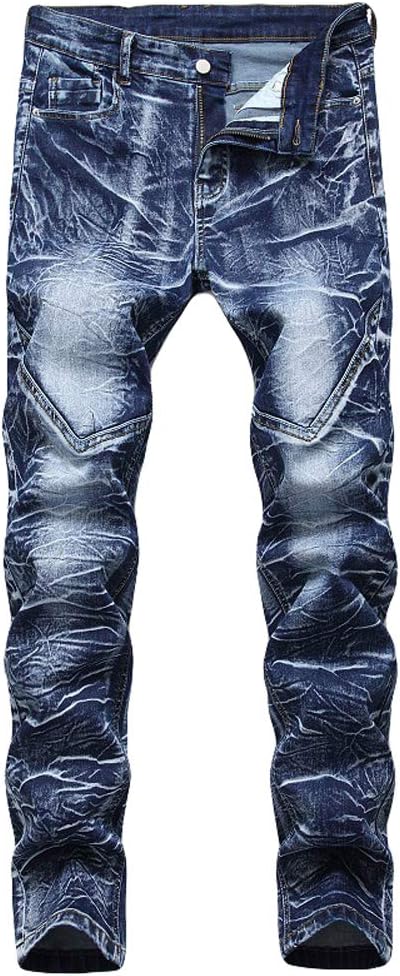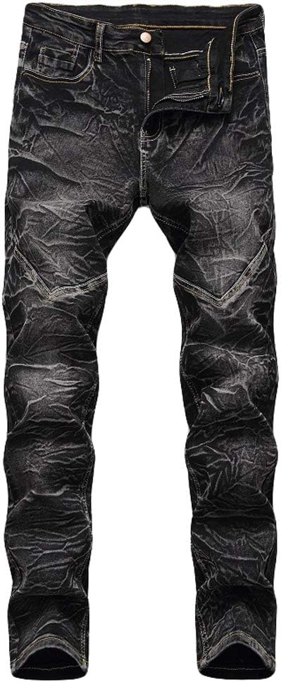 Chowsir Men Stylish Mid Waist Stretch Wash Jeans Straight Denim Pants Straight Fit