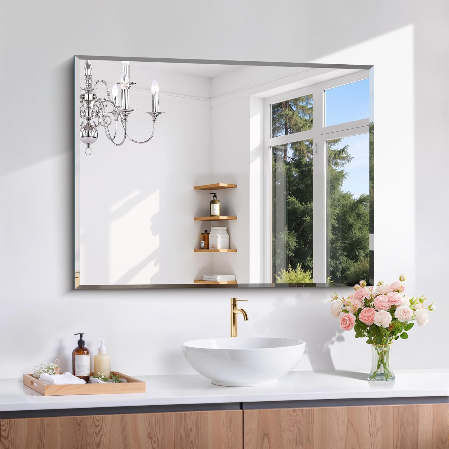 CILIBER Frameless Mirror, 20x36 Inch Bathroom Mirrors for Wall, Rectangle Bathroom Vanity Mirrors with Polished Edge, Hangs Horizontally or Vertically for Bathroom, Bedroom and Living Room