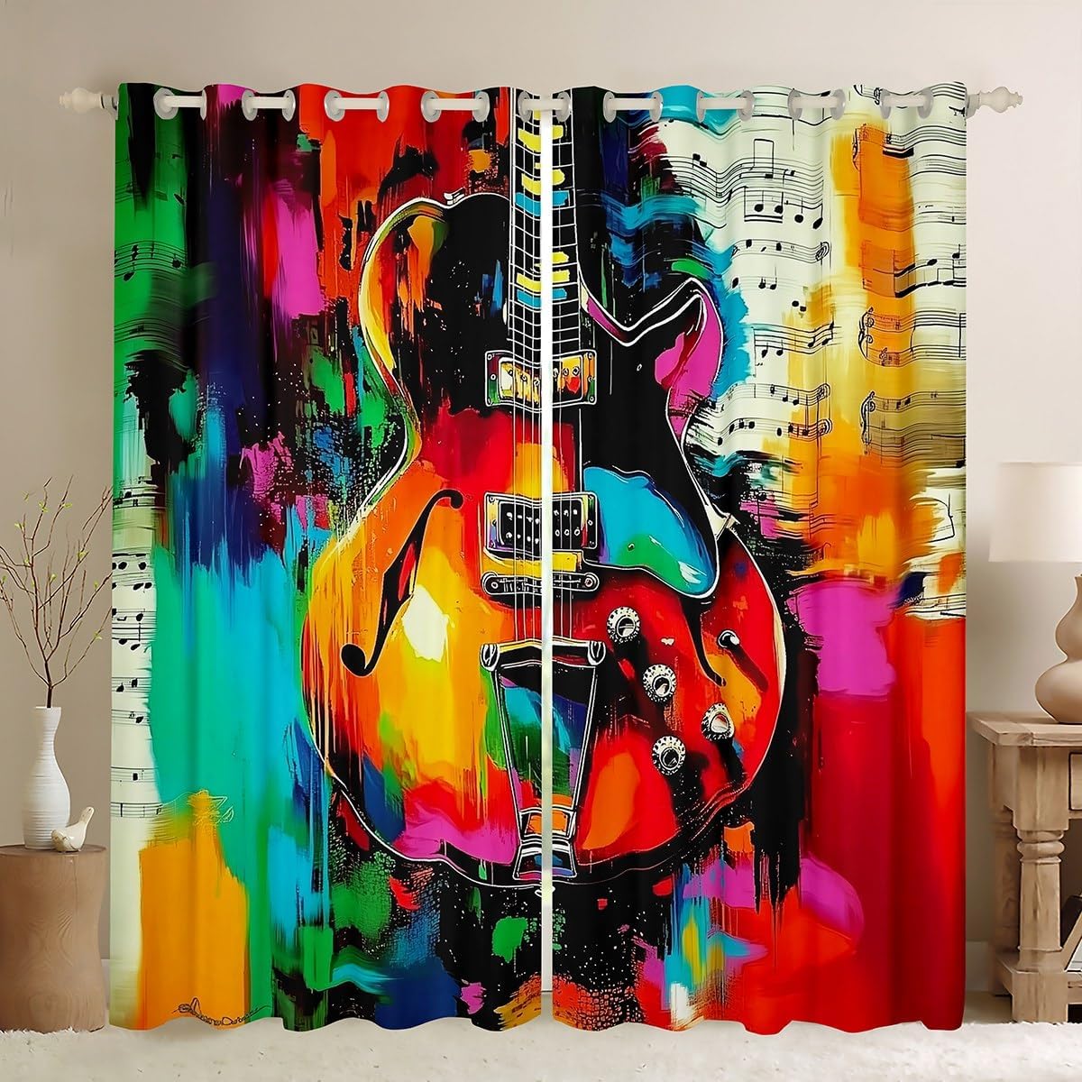 Package Includes: 2 Window treatment sets curtain panels Size Information: 2 panels of 38 inch x 45 inch each 2 panels of 38 inch x 54 inch each 2 panels of 42 inch x 63 inch each 2 panels of 42 inch x 84 inch each 2 panels of 42 inch x 90 inch each 2 panels of 52 inch x 63 inch each 2 panels of 52 inch x 84 inch each Woven from polyester and polyester blend. Suitable for living room, kids teens adults bedroom, kitchen, home office, or take it along for RV travel trailers
