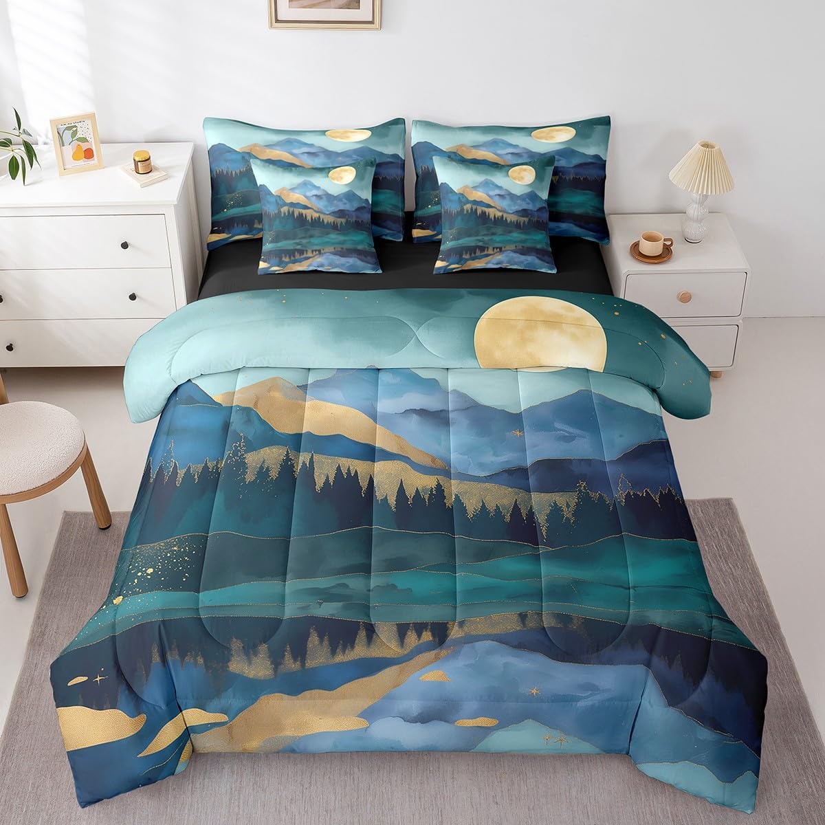 Colorful Makeover to Your Life Various size and color options, there are always decor room. Size Options: 7 Pieces Twin Size,1 Comforter 68"x 90", 1 Fitted Sheet 39"x75"x16", 1 Flat Sheet 96"x66", 2 Pillow Cases 30" x 20",2 Throw Pillow Covers,Covers Only. 18"x 18". 7 Pieces Full Size ,1 Comforter 79"x 90", 1 Fitted Sheet 54"x75"x16", 1 Flat Sheet 96"x81", 2 Pillow Cases 30" x 20",2 Throw Pillow Covers,Covers Only. 18"x 18". 7 Pieces Queen Size,1 Comforter 90"x 90", 1 Fitted Sheet 60"x80"x16", 1 Flat Sheet 102"x90", 2 Pillow Cases 30" x 20",2 Throw Pillow Covers,Covers Only. 18"x 18". 7 Pieces King Size,1 Comforter 104"x 90", 1 Fitted Sheet 78"x80"x16", 1 Flat Sheet 106"x90", 2 Pillow Cases 36" x 20",2 Throw Pillow Covers,Covers Only. 18"x 18". Decoration: For your mom, dad, sister, brother, grandma, wife, husband, and all other beloved with many surprising designs. You can find a design for everybody and every interest in our collection. Your Home,You Decide Different types of bedding sets could bring rooms in different styles. Also, rooms in different styles needs different types of bedding sets