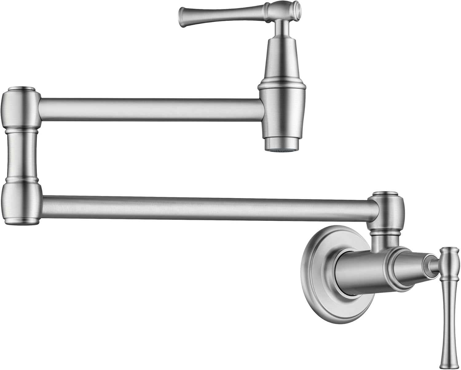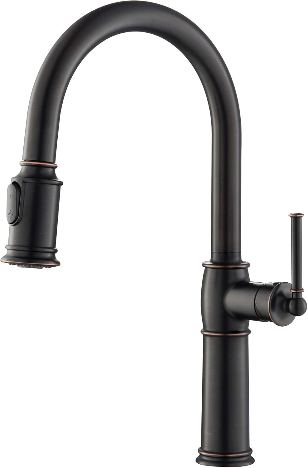 Featuring a classically-inspired design reimagined with new details that celebrate the traditional aesthetic, the Sellette Traditional faucet adds a touch of elegance to any kitchen. A beautifully edged sprayhead and base add visual intrigue to the high-arc spout, creating a perfect decorative touch. The highly functional pull-down design features an ergonomic sprayhead that switches between aerated stream and powerful spray to handle all your kitchen tasks. Reach technology offers an extended range of motion, with an easy-retract hose and swivel adapter for maximum flexibility. Soft rubber nozzles make the sprayface easy to clean for a long-lasting powerful flow. Includes an optional deck plate which allows you to install this single handle faucet with a 1, 2, or 3-hole sink. Customize the look with your choice of finish: Sellette Traditional faucet is available in Oil Rubbed Bronze and easy-to-clean Spot Free all-Brite Stainless Steel.