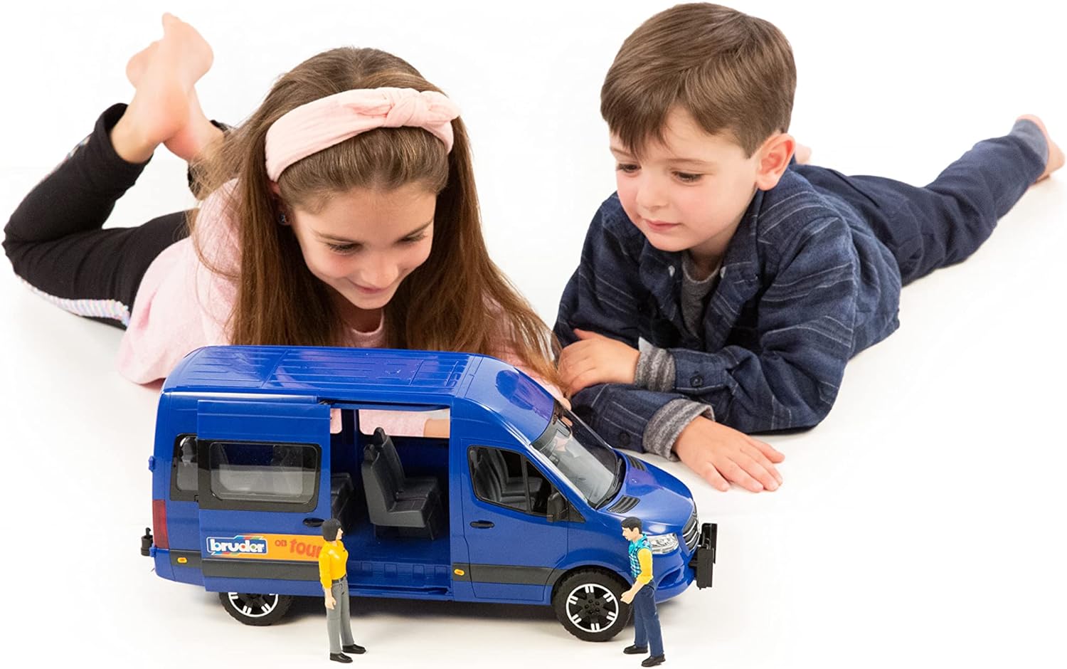 The Sprinter Transfer provides almost unlimited application options with its large number of variants. From school buses or crew buses to efficient airport transfers and comfortable intercity buses. This Sprinter offers maximum flexibility. The new Sprinter model is now part of the BRUDER range. The driver's cab door and rear doors open. A particular highlight is the newly developed sliding door on the co-driver's side. The interior is flexibly designed. The rear seat rows can be installed in different viewing directions or removed completely. Scope of delivery of this vehicle includes both a passenger and the driver. All bworld figures from the wide BRUDER range go with this vehicle.