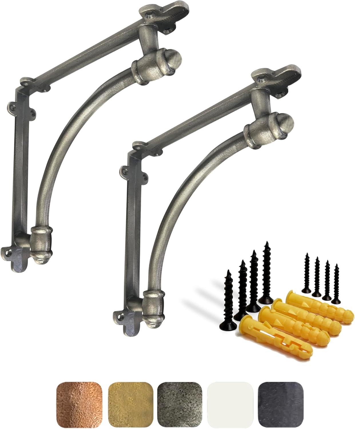 Personalize your space with rustic shelf brackets & supports! Add a decorative touch to your home with this tastefully designed heavy duty floating shelf bracket. These sturdy cast iron shelf brackets for wood shelves are ideal for using both indoors and outdoors. The design is a replica of antique metal shelf brackets used in years gone by. These rustic shelf brackets measure 9.6 x 1.7 x 9.6 inches. Create your own customized look by combining shelves of your choice, with these unique decorative shelf brackets. Search "NACH shelf brackets" on Amazon to see the complete selection of our various shelving brackets styles and sizes. We at NACH are proud of our shelf brackets & supports and we want you to love them as much as we do! if you have any questions or comments on how our countertop brackets can be better, please feel free to contact the team at NACH at admin@northamericancountryhome.