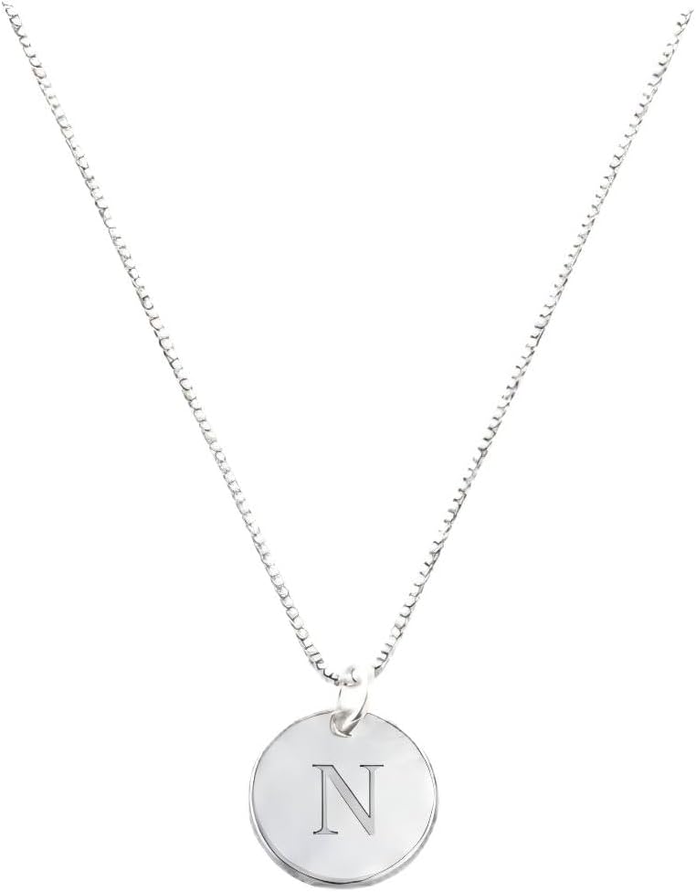 OAK & LUNA - Sterling Silver A-Z Initial Disc Necklace - Letter Pendant on Box Chain, Elegant & Gift‑Ready