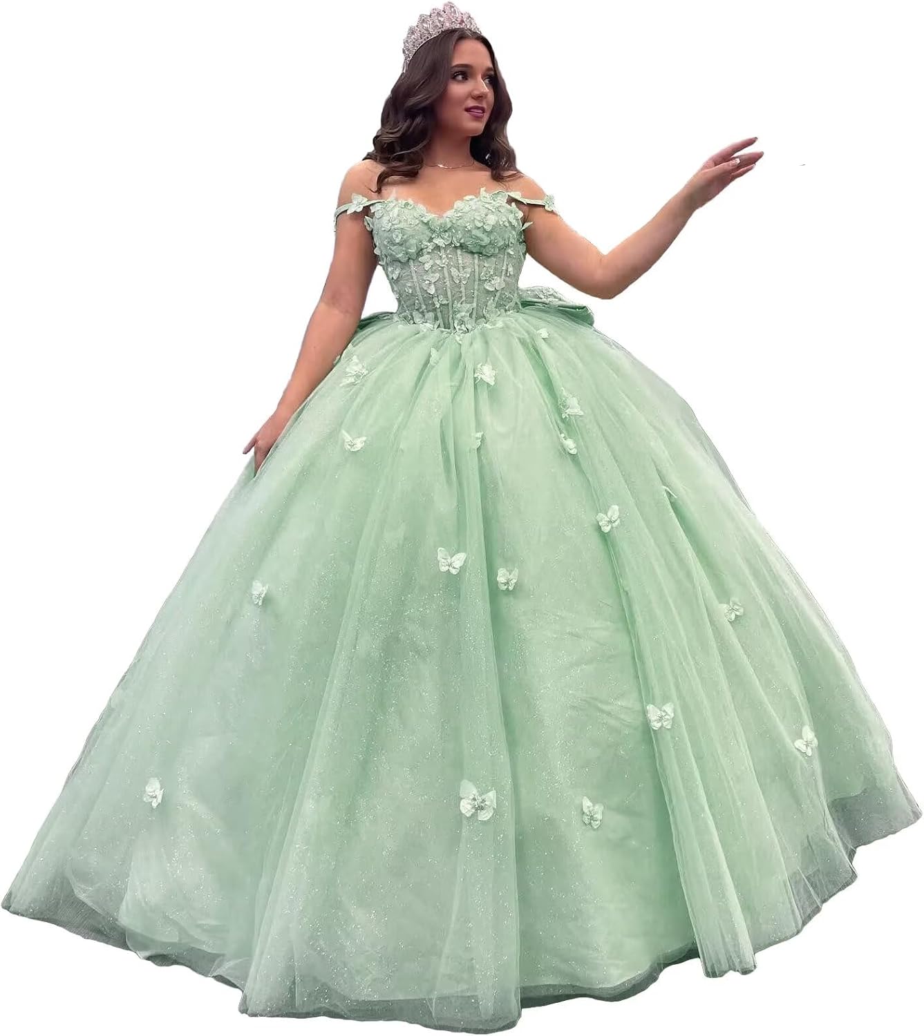 Welcome to Asulla! ASULLA 3D Butterfly Quinceanera Prom Dress With Bow Off Shoulder Sweet 15 16 Princess Ball Gowns White Wedding Dress For Women Feature Fabric:Tulle Condition:New/Made-to-Order Neckline:Off The Shoulder Hemline/Train:Floor Length Embellishment:3D Butterfly Lace Appliques Silhouette:Ball Gowns Sleeve Length:Sleeveless Accepted Customized:Yes Closure:Drawstring Style:Fashion&Gorgeous Occasions:The dress perfect for prom,homecoming,quinceanera,ball,cocktail,birthday,sweet 15 16,festivals,graduation,wedding,party,bridesmaids,formal,semi-formal,banquet,pageant,masquerade,gala,church,office and other special occasions. Size When you are shopping for a dress,knowing how to choose a size is very important. 1.Please measure the data about full bust/waist/hips,then compare with our own size chart. 2.If these three data do not belong to any standard size, please choose a larger size.When the dress doesn't fit perfectly,tailor can easily change sizes to fit.All of our dresses have extra 3CM fabric in the seams. 3.The dress is mermaid style,has zippers,long sleeves,we suggest you measure the data,no one's figure is standard size. Customized If you are not sure of the size,customized the dress is a good idea.Please measure the data below,all data are Inches/CM Full Bust: Waist: Hips: Shoulder to floor plus heel: Height plus heel: Shoe heel: Event Date: Notes 1.After you open the parcel, please hang the item out immediately,steam ironing after use effect is better. 2.The color of the evening dress may be a little different from the pictures on website caused by factors like monitor brightness and light intensity. 3.Please do not bleach,do not wring,hand wash or dry clean. Thank you for trust