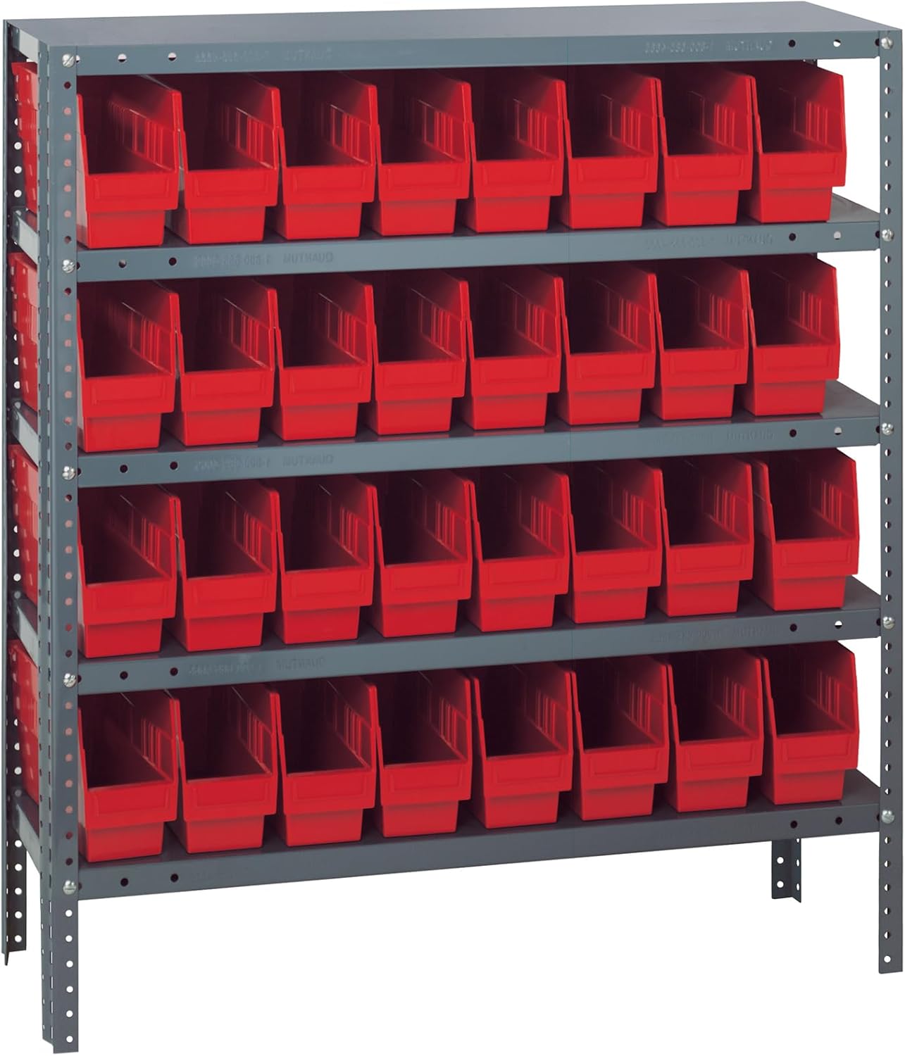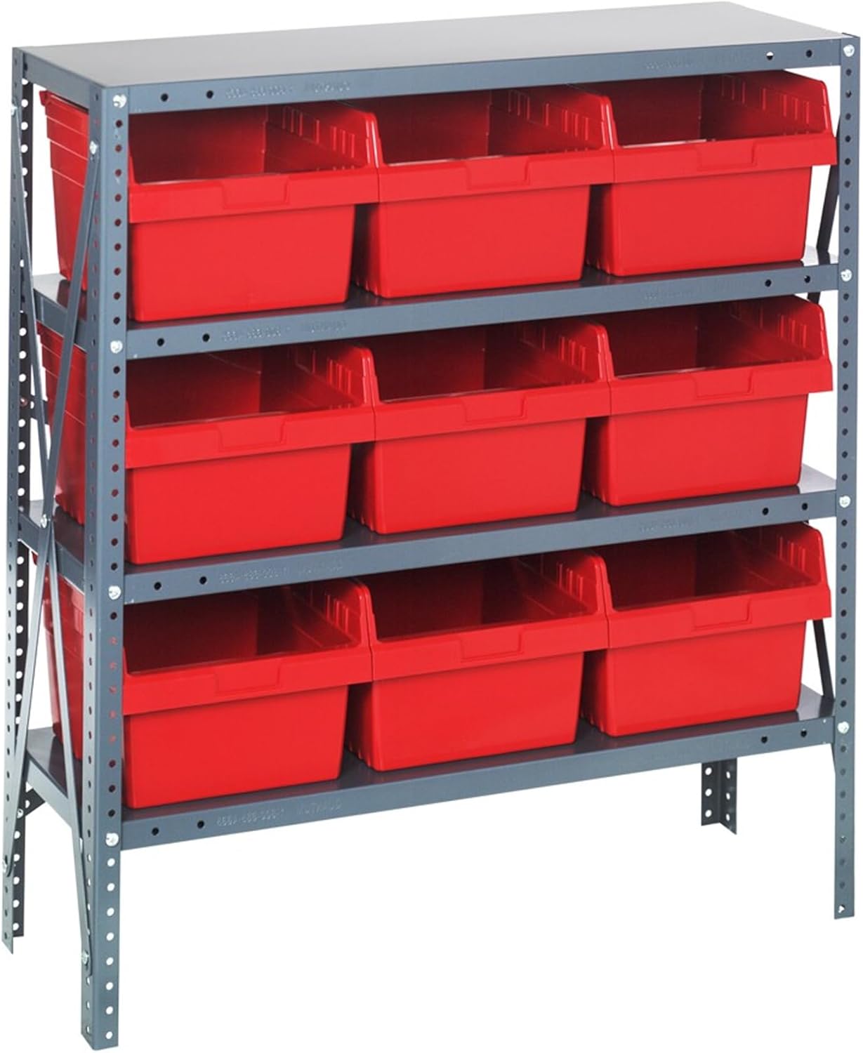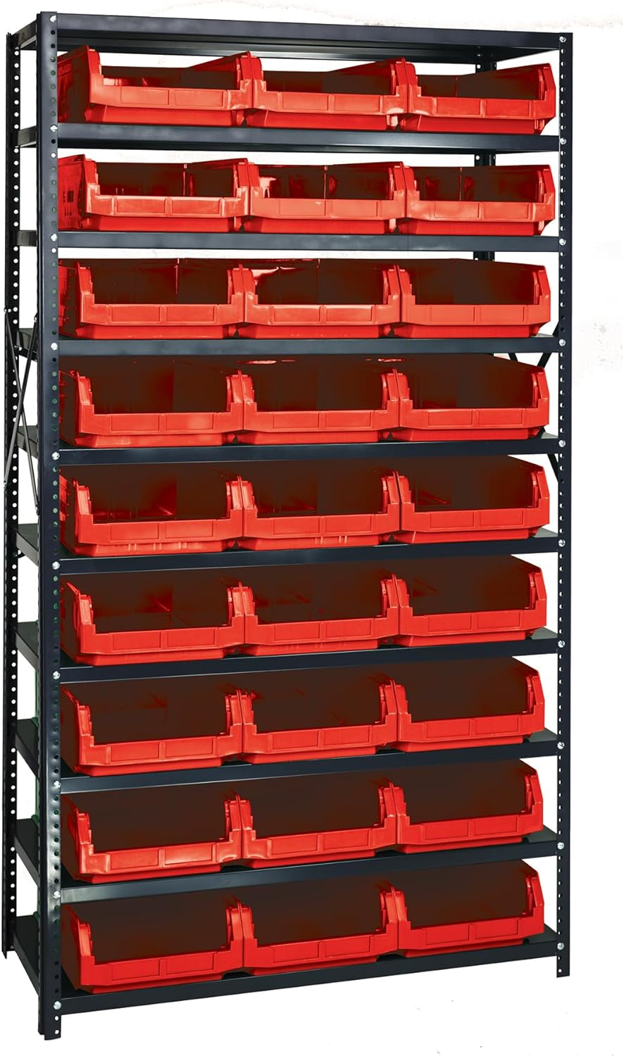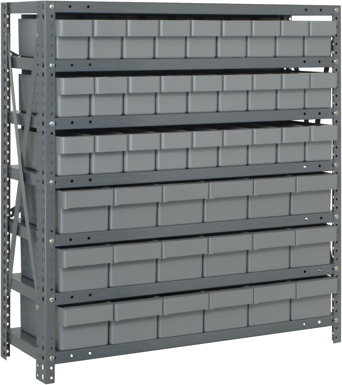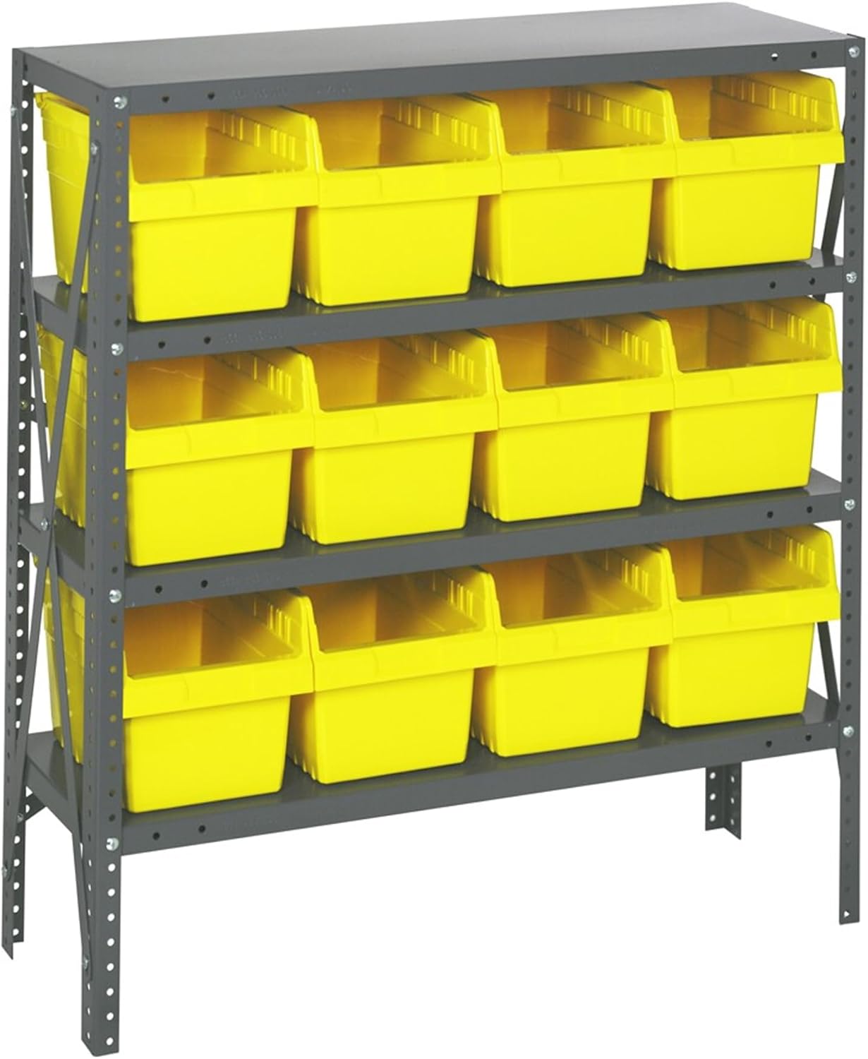 Shelving Unit, 24"D x 36"L x 75"H, heavy duty, 400 lb. load capacity per shelf, includes: (8) shelves, (12) 23-7/8"L x 8-1/4"W x 7"H (QUS950) and (12) 23-7/8"L x 11"W x 7"H (QUS952) bins available in multiple colors, uprights and cross bars, galvanized steel finish