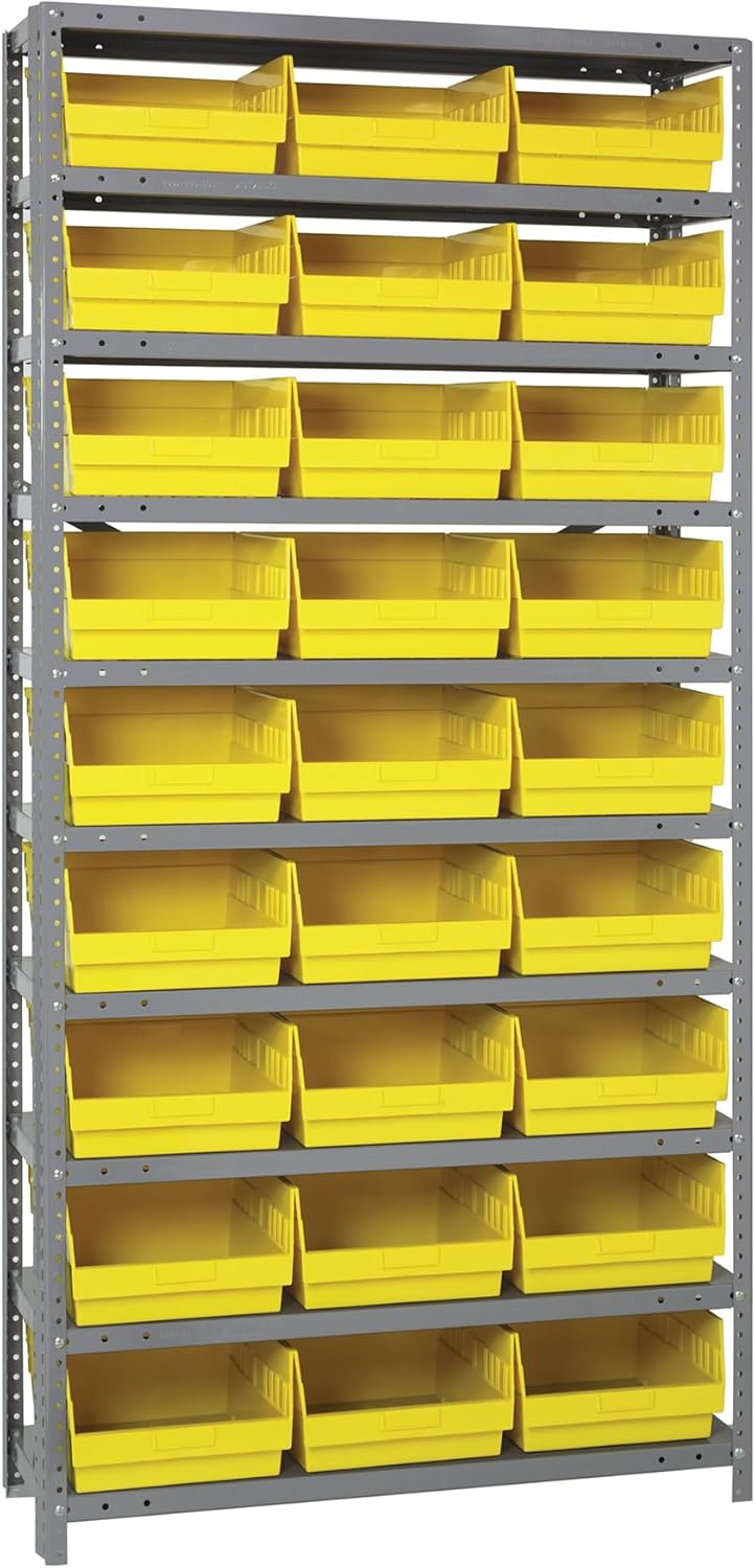 Quantum Storage Systems Wire Shelving Unit W/24YELLOW Bins