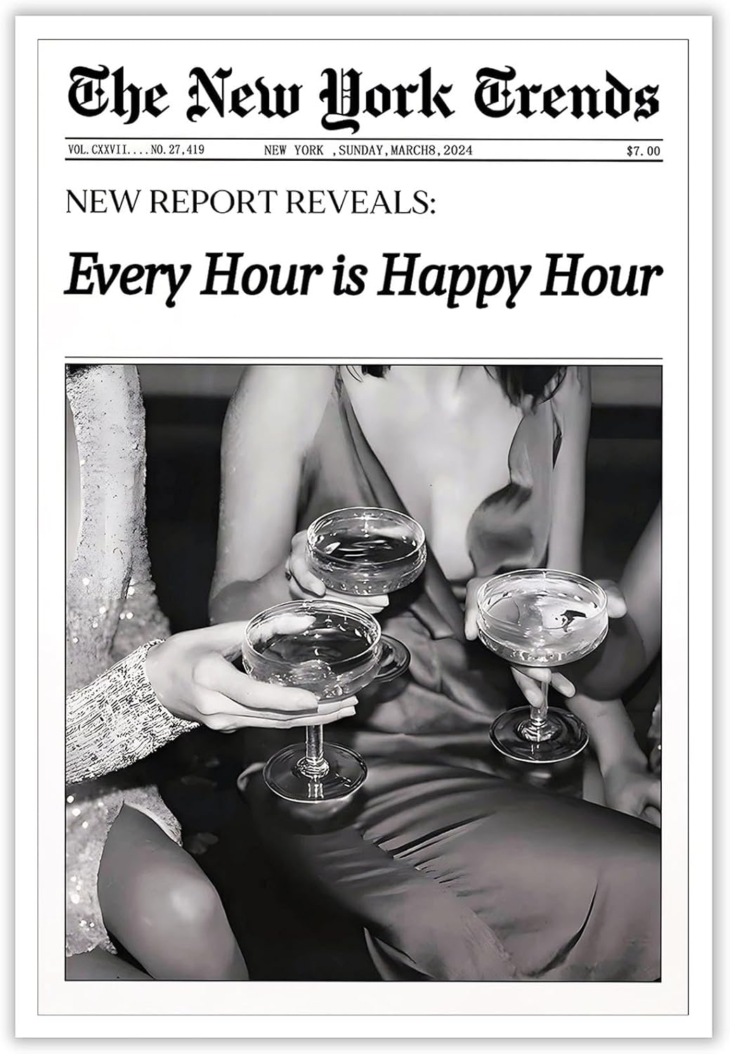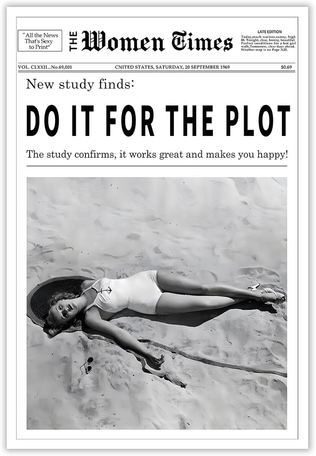 Discover our latest collection of vintage newspaper style wall art posters. These exquisite black and white artworks add a unique charm to your space and bring joy to your daily life. Perfect for Italian-style kitchens, bar carts, girls' dorm rooms, living rooms, or bedrooms, these posters are ideal for enhancing your space with an artistic touch or as a unique gift. We offer three types of frames: Unframed Print Wooden Frame Black Aluminum Frame Available in three sizes: 12x16 inch (30x40 cm) 16x24 inch (40x60 cm) 24x36 inch (60x90 cm) Product Features Vintage Women Times Newspaper Wall Art: We funny poster feature classic vintage newspaper style designs, showcasing unique black and white aesthetics. each piece exudes fashion and artistic sense. Trendy wall decor : Made with high-quality eco-friendly materials, our posters ensure vivid and long-lasting colors that are resistant to fading. No matter which frame type you choose, you will appreciate the durable and sturdy quality. College room decor Versatile Applications: These posters are perfect for hanging in Italian-style kitchens, by bar carts, in girls' dorm rooms, living rooms, bedrooms, and more, instantly enhancing the artistic atmosphere of any space. Dorm decor for college girls: This poster makes a perfect gift for friends, family, lovers, and colleagues, especially for occasions like birthdays, Christmas, Thanksgiving, New Year, and other holidays, bringing them surprise and warmth. We are committed to providing high-quality products and satisfying service to every customer. If you encounter any issues during the purchasing process or are dissatisfied with our products, please do not hesitate to contact our customer service team. We will do our best to resolve your issues and offer return and exchange services, ensuring a pleasant and worry-free shopping experience.