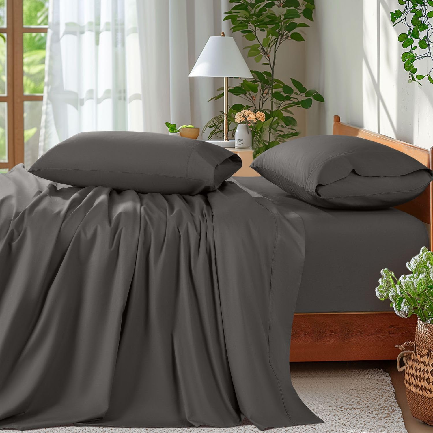• FITS YOUR BED LIKE A PAIR OF GLOVE: Our Fitted Sheets come with all-around elastic to ensure a secure fit and have deep pockets (up to 16") to fit your mattress without shifting. What's included: Each queen sheet set includes: 1 x fitted sheet 60" x 80" x 16" + 1 x flat sheet 90" x 102" + 2 x pillowcases 20" x 30".