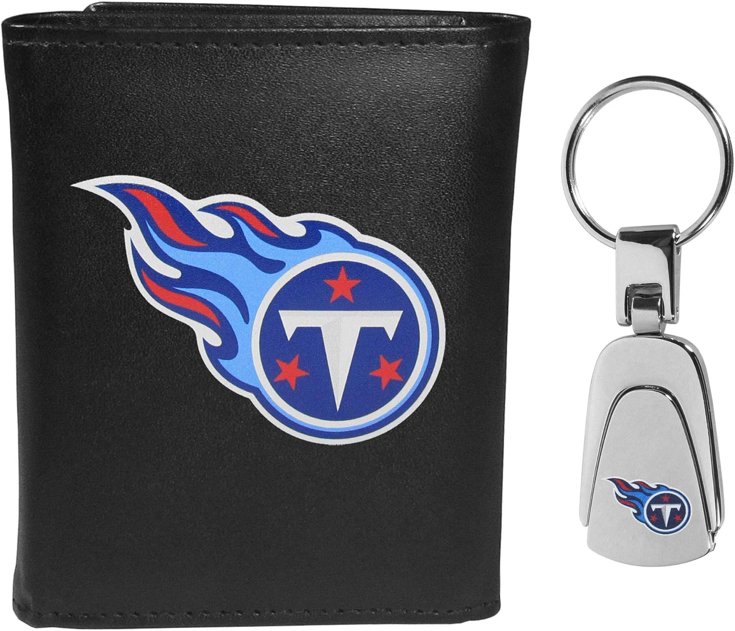 Our classic fine leather tri-fold wallet is meticulously crafted with genuine leather that will age beautifully so you will have a quality wallet for years to come. This is fan apparel at its finest. The wallet is packed with organizational features; lots of credit card slots, large billfold pocket, and a window ID slot. The front of the wallet features an extra large Tennessee Titans printed logo. Comes with a stylish steel teardrop key chain that features the team logo printed on the front and a high polish chrome finish on the back.