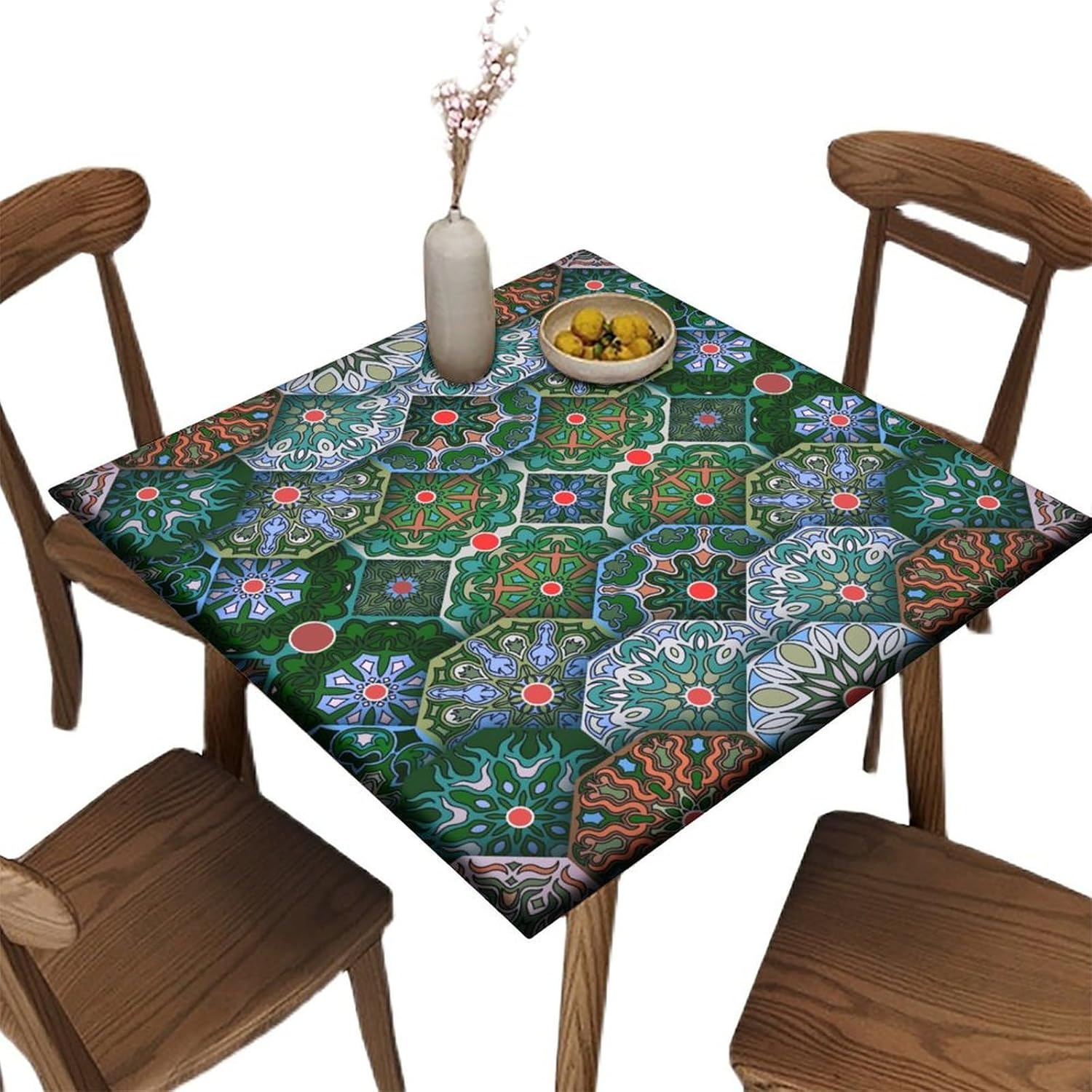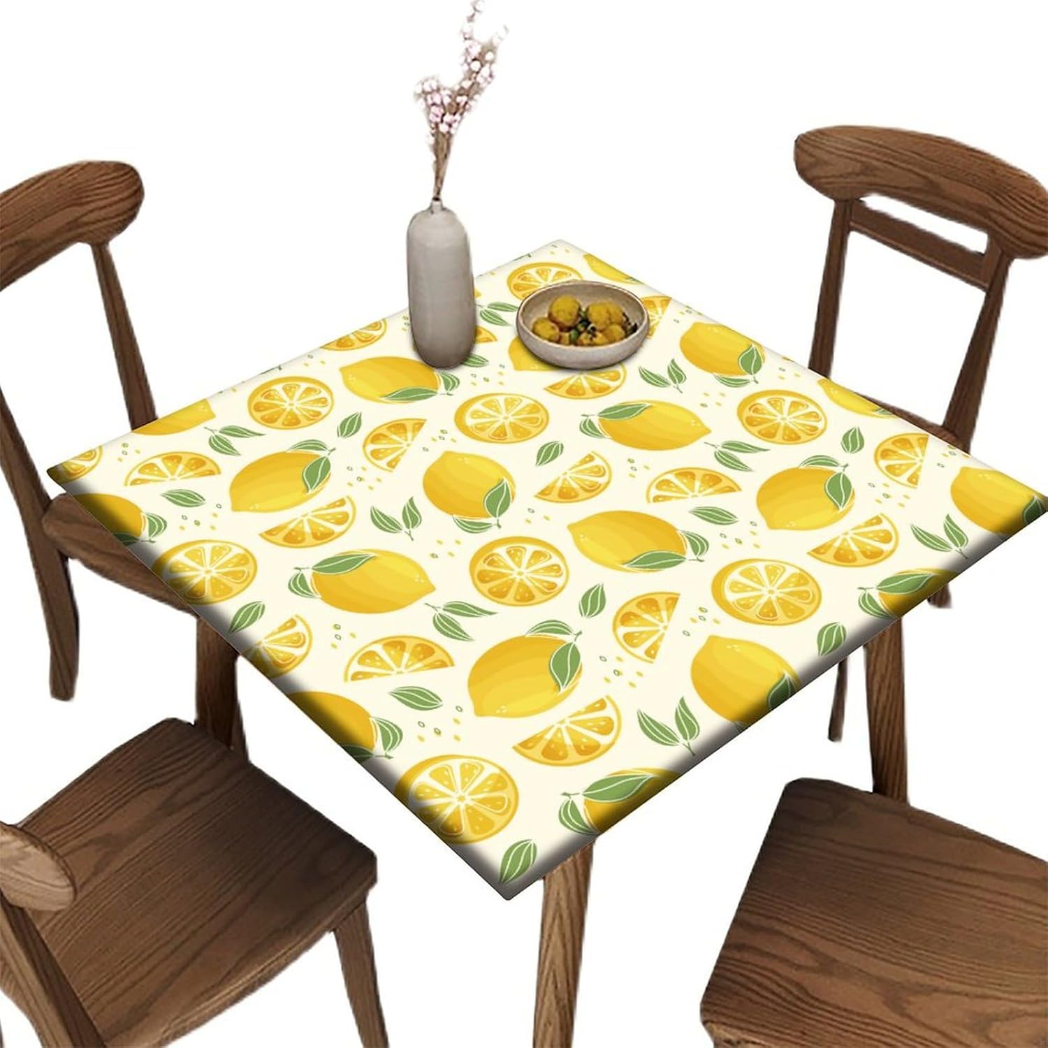 Our fitted tablecloths have elastic sewn around the perimeter and come with two auxiliary straps with snap buttons to securely fasten the tablecloth to the top of the square table. So, no more pulling, tugging or tripping or everything being blown over. Great for outdoor activities and families with kids and pets.