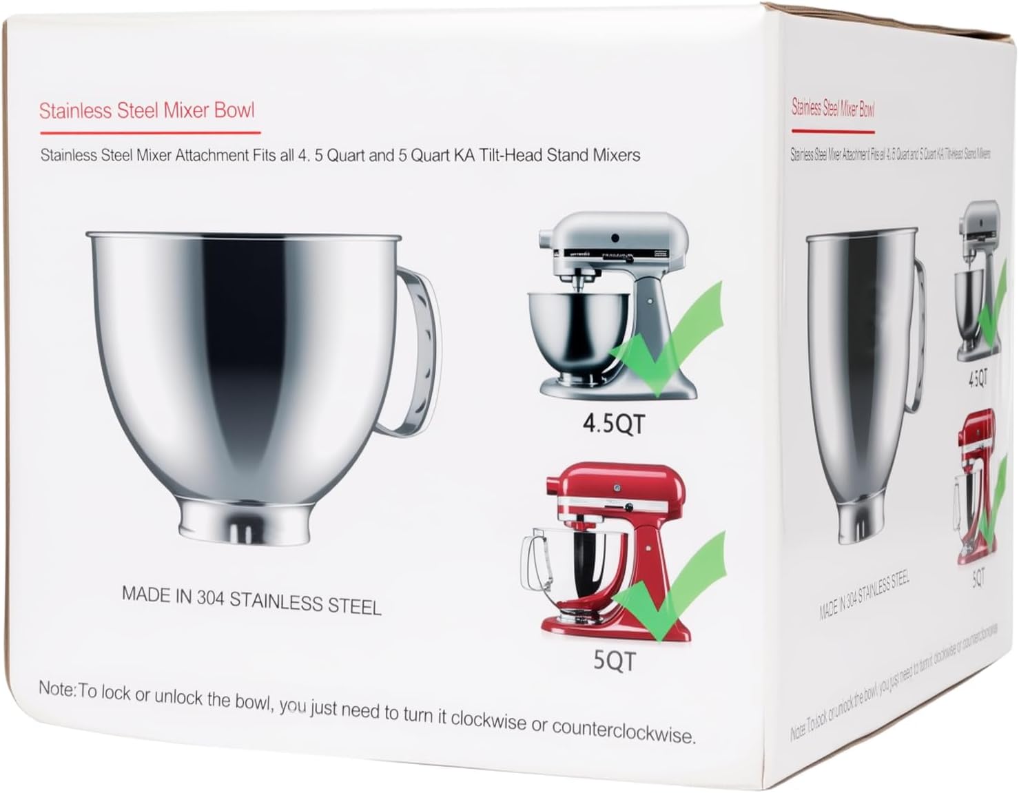 Product Name: Stainless Steel Mixing Bowl for Mixer - SilverPackaging size: 22*22*19Weight: 600GMaterial: 304 stainless steelDescription: (For reference only5-quart stainless steel mixing bowl - compatible with all 4.5-5Qt kitchen auxiliary vertical mixers. Compatible models include Artisan KSM100, KSM103, KSM110, KSM150, RRK150, K45SS, KSM75, KSM90, KSM95, K45, 5KSM125, 5KSM150, 5KSM175, and 5KSM7580 And more compatible models are easy to install and use.
