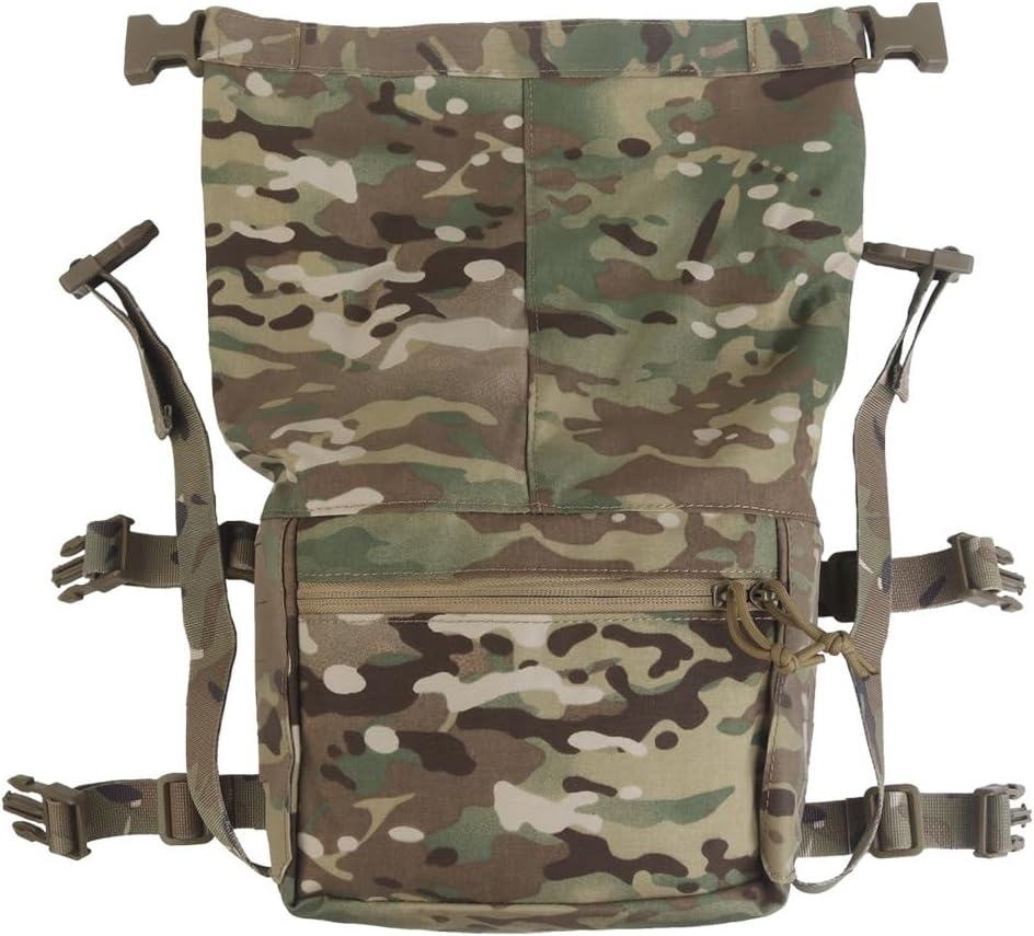This tactical expansion pack combines functionality and versatility, serving as either a standalone waist bag or an add-on for MOLLE-compatible gear. Its open-top design, zippered pocket, and laser-cut MOLLE panels offer ample storage and customization for outdoor, airsoft, or EDC use.