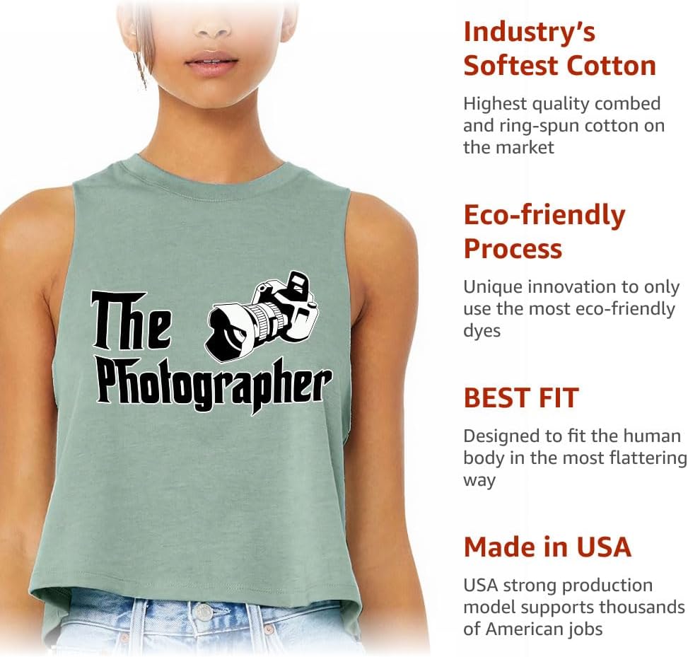 Cute and flattering The Photographer Racerback Cropped Tank is suitable for most indoor or outdoor activities, such as gym, yoga, running, hiking, beach or relaxing around the house. Pair Camera Women's Tank with your favorite sports bras, especially strappy ones, and high-waisted leggings, then you will enjoy cool and comfortable exercise throughout the summer.