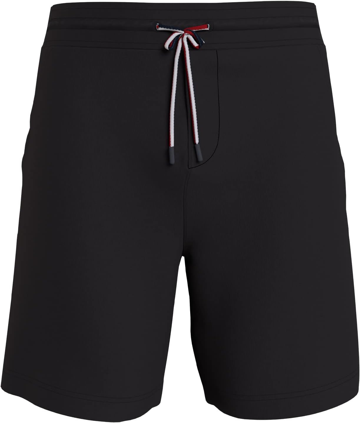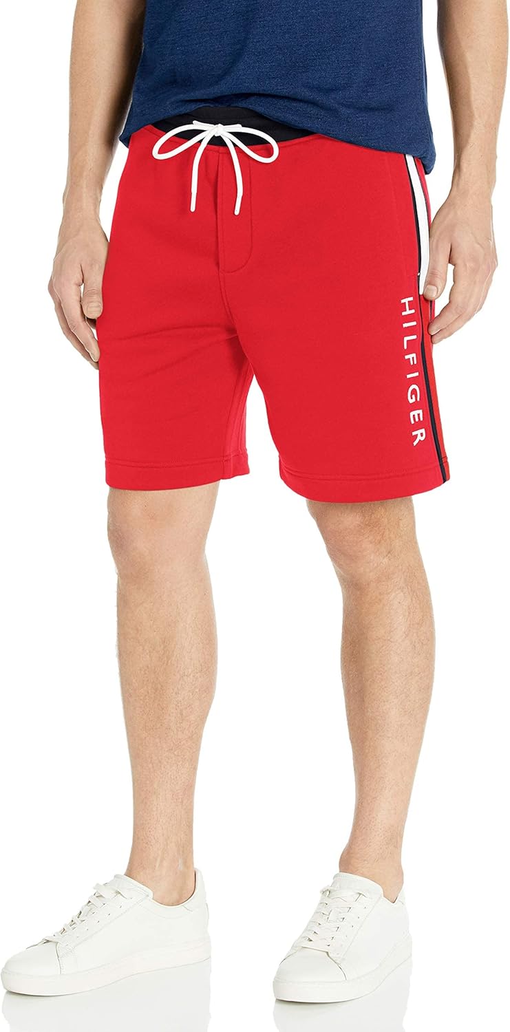 Tommy Hilfiger Sweat Short has an drawstring closure and elastic waistband. Sweat short for men falls at the knee. Sweat shorts with double pockets at the hips. Single pocket on the back of sweat shorts. Emboridered flag on back pocket of sweat shorts.