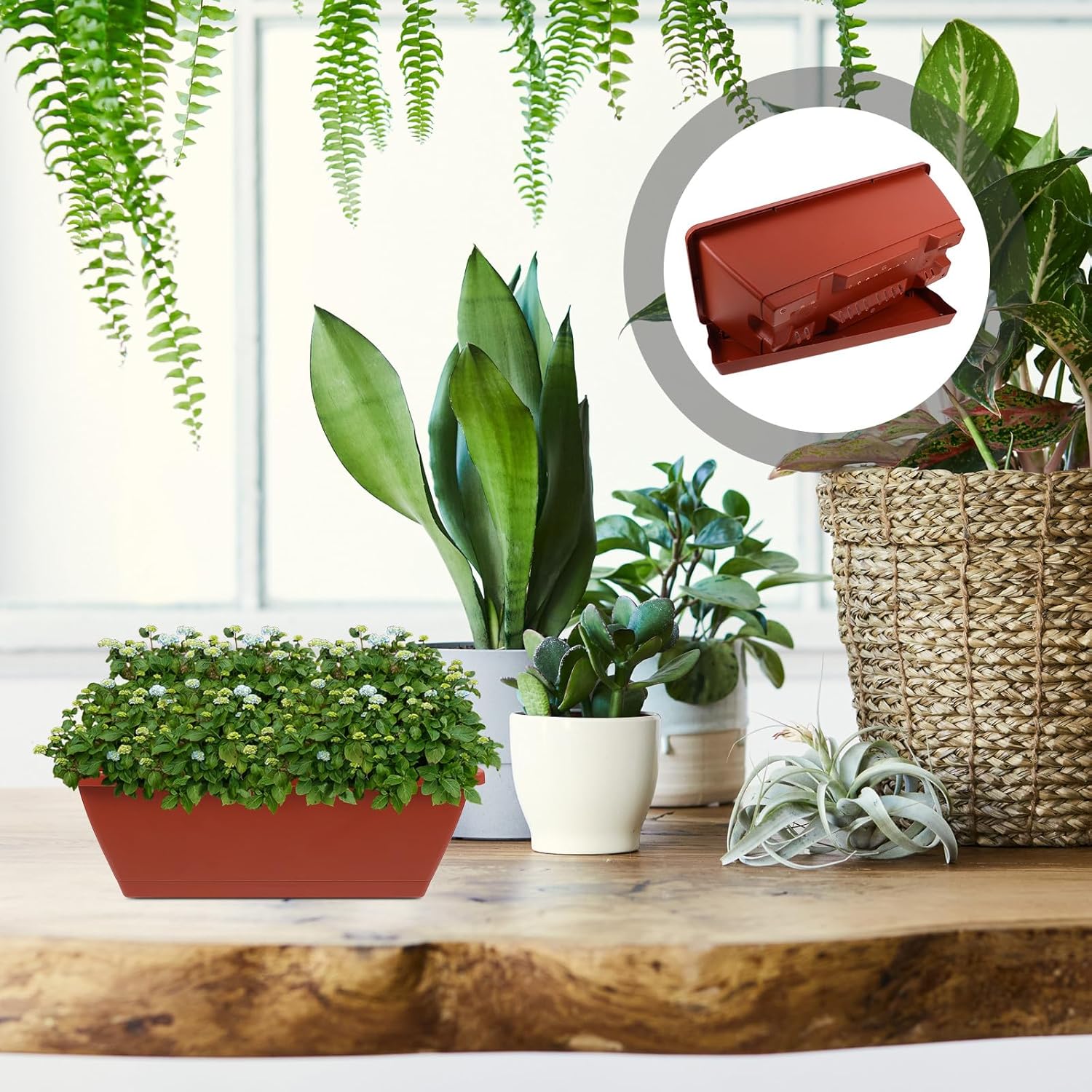 Package List 6 x flower pots with trays Characteristics -Product Info:Planting tank - Size: 43.00X18.50X13.50cm/16.90X7.27X5.31in -Color:Dark Red -Material:Plastic -The flower pot made of plastic materials, which are elegant and simple. -Also can be a good favor choice for your friends and families, they will like it very much Plastic Flower Planter - workmanship and detailed appearance make flowerpots look good, safe to use Flower Holder -Featuring lightweight and practical, and this Bonsai Pot is easy to move and decorate planter for indoor plants - The Rectangular Bonsai Flower Pot is easy to and display, space-saving and practical indoor or outdoor planter pots for outdoor plantsGoods Descriptionflower pot Vegetable planting pot has wide application, more convenient to use.window planter It can match the succulent plant and play a good decorative effect.plants pots The flowerpot made of sturdy materials have appearance, excellent texture, uniqueness and attractiveness, and are suitable for holding plants